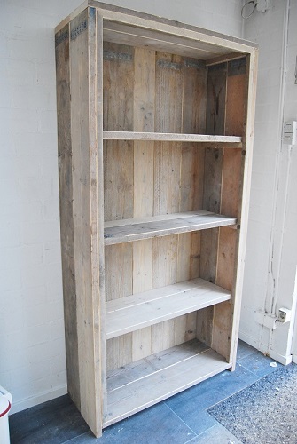 Een echte boekenkast van gebruikt of nieuw steigerhout. Deze boekenkast heeft 3 legplanken, maar dit kunt u aanpassen. Standaardmaat is 80x180x40 of 46x180x40. (bxhxd)