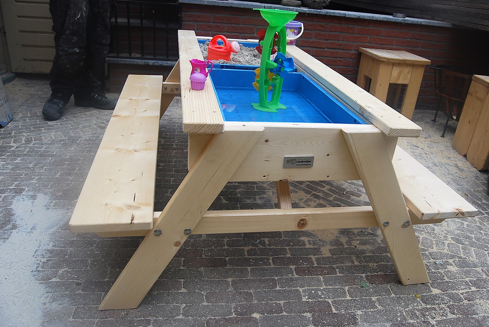 Met zand en water spelen, maar ook ideaal bij een feestje: deksel erop en lekker smikkelen! Standaard verkrijgbaar in 80, 110 en 145cm. Zithoogte 33cm.